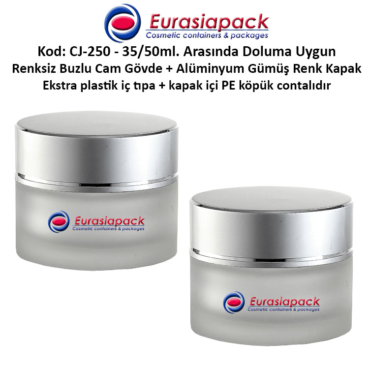 Krem Kavanozu Buzlu Cam Gövde Gümüş Rengi Kapaklı 35/50 gr CJ-250