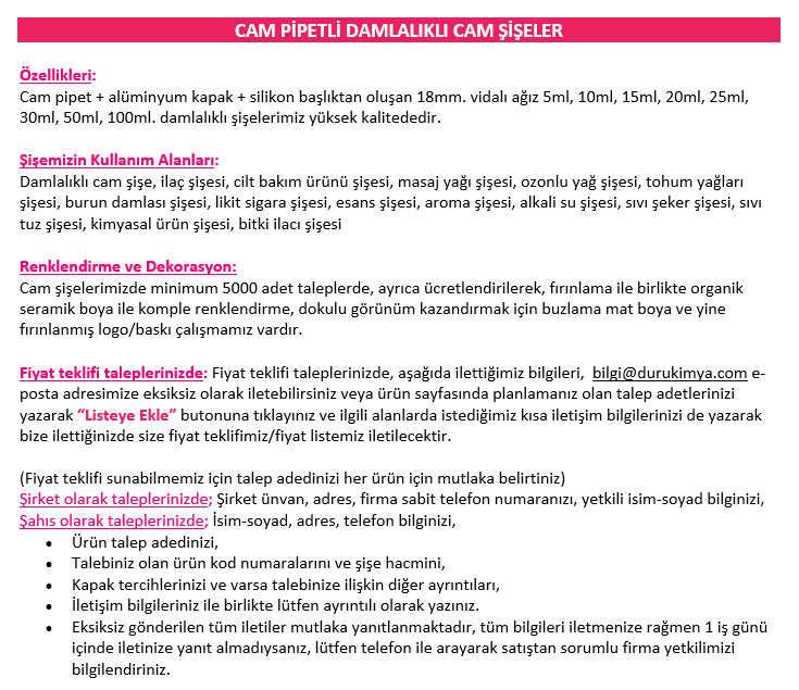 - Ürün Kodu: Cam Pipetli Damlalıklı Renksiz Cam Şişe 30ml - Kod 4030